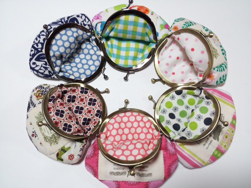 フラットなマチなしのガマ口ポーチを6つです!