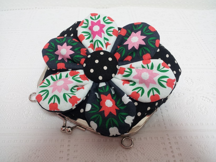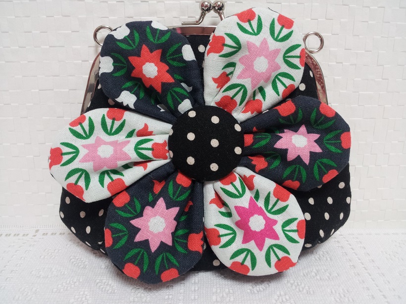 以前作ったお花のガマ口ポーチをポシェットにしてみました~