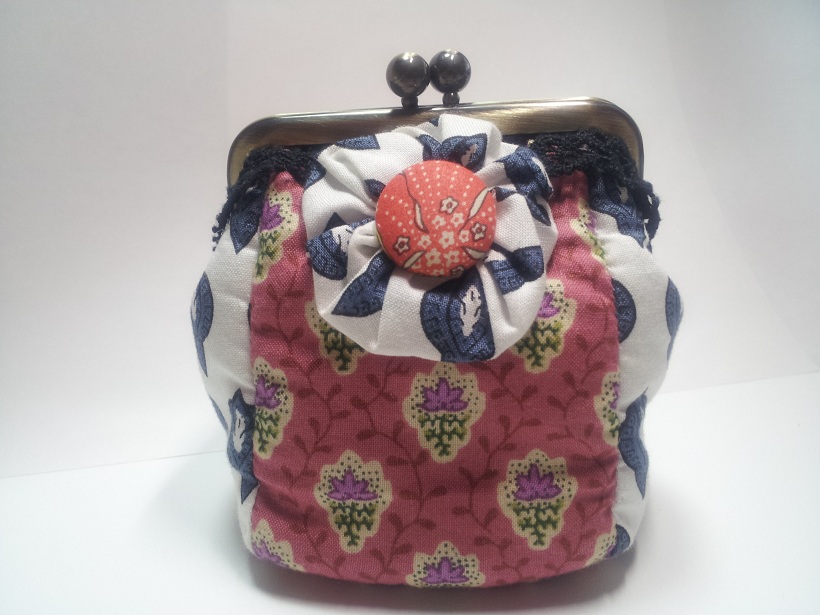 レースをかませて真ん中にヨーヨーキルト+くるみボタンでアクセント付けたつもりです。