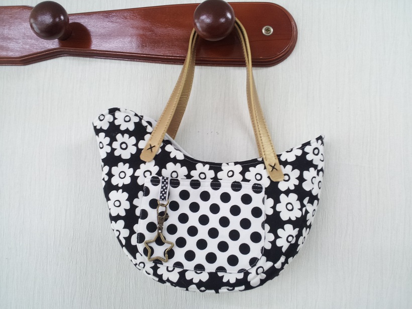 シロクロ生地の組み合わせで持ち手をゴールドにしました♪