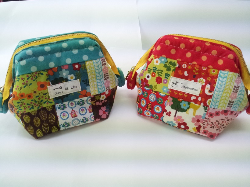 前回とおなじく、パッチワークでワイヤー入りポーチ作りました~