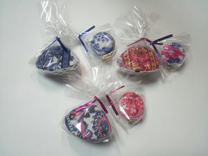 壁の花となっていたマカロンコインケースとシェルケースをそれぞれラッピングしました