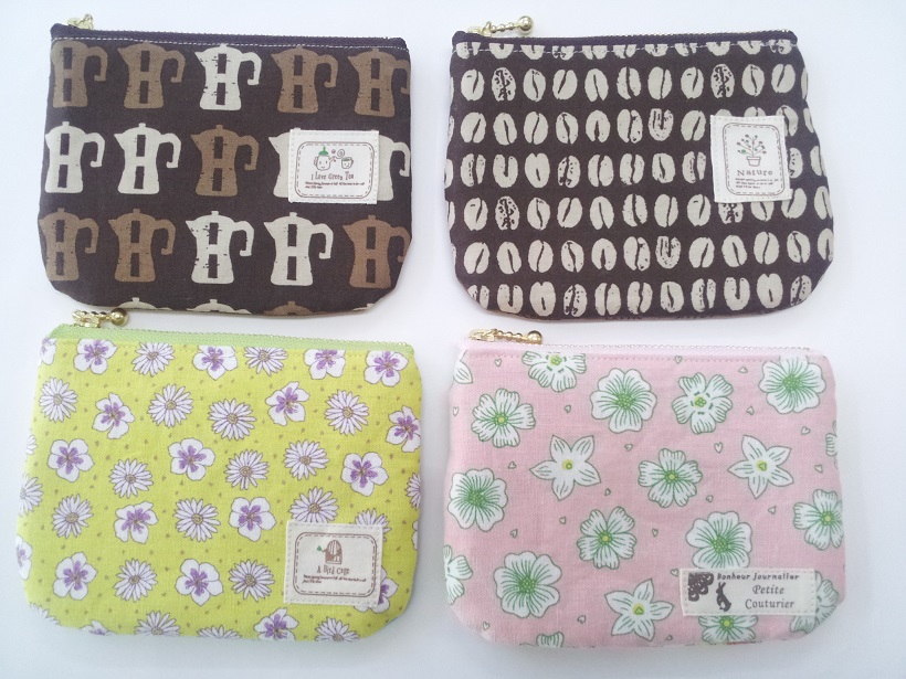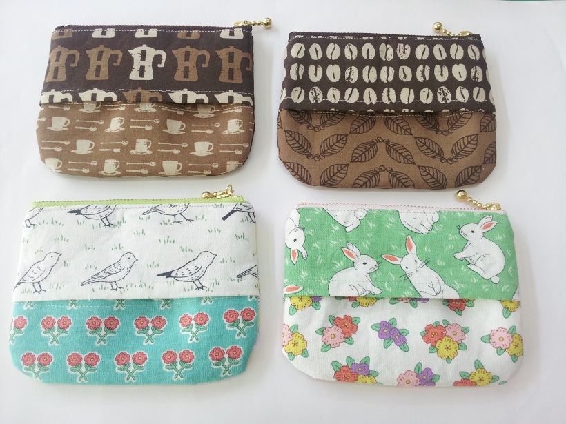 お気に入りの珈琲生地でふたつと、お花柄のふたつ